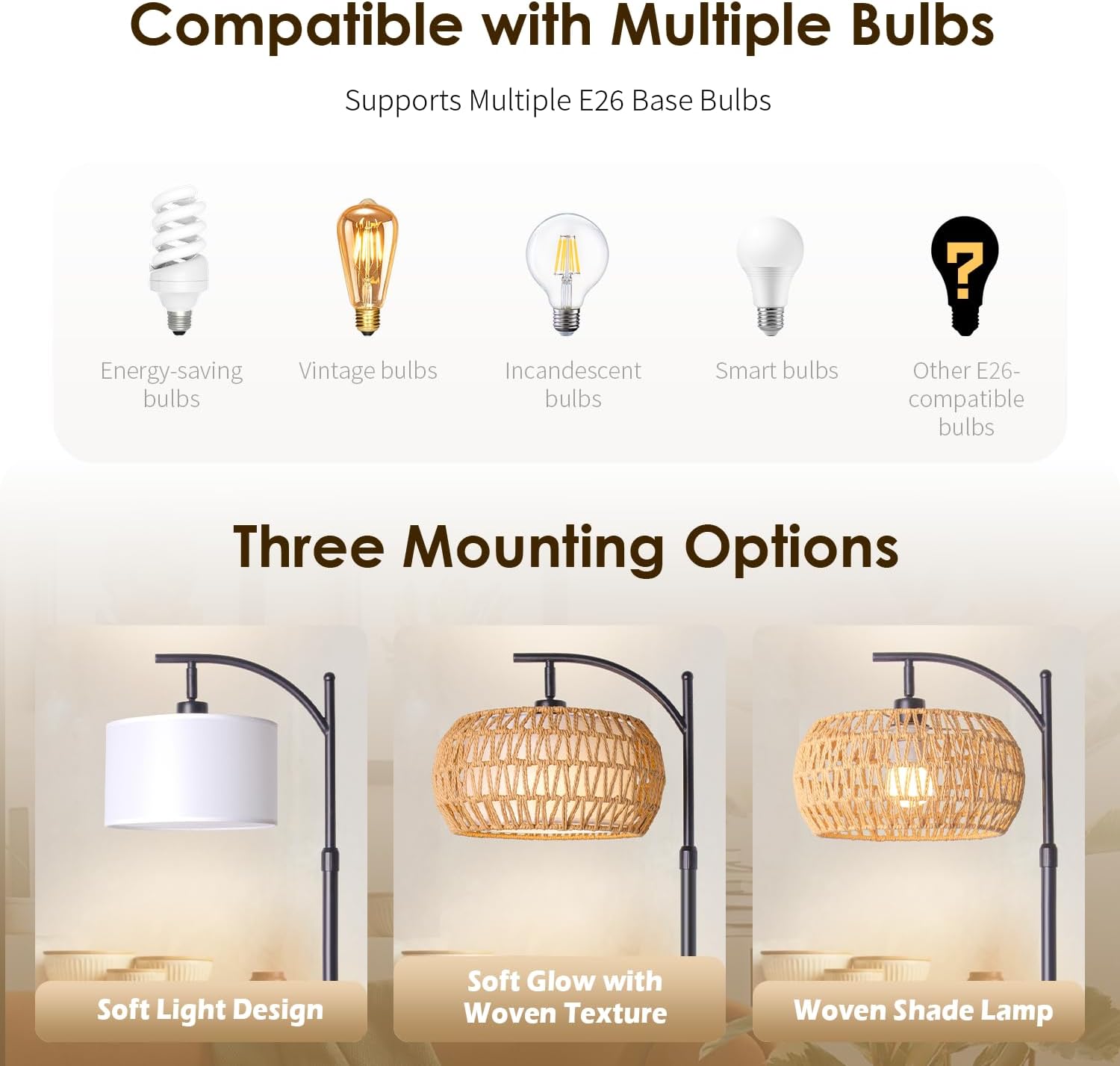 Introducing the Boho Rattan Floor Lamp with Shade, a stunning addition to elevate the ambiance of your living space. This handwoven arc standing light brings a touch of bohemian charm with its intricate rattan design, making it a stylish and unique lighting fixture.